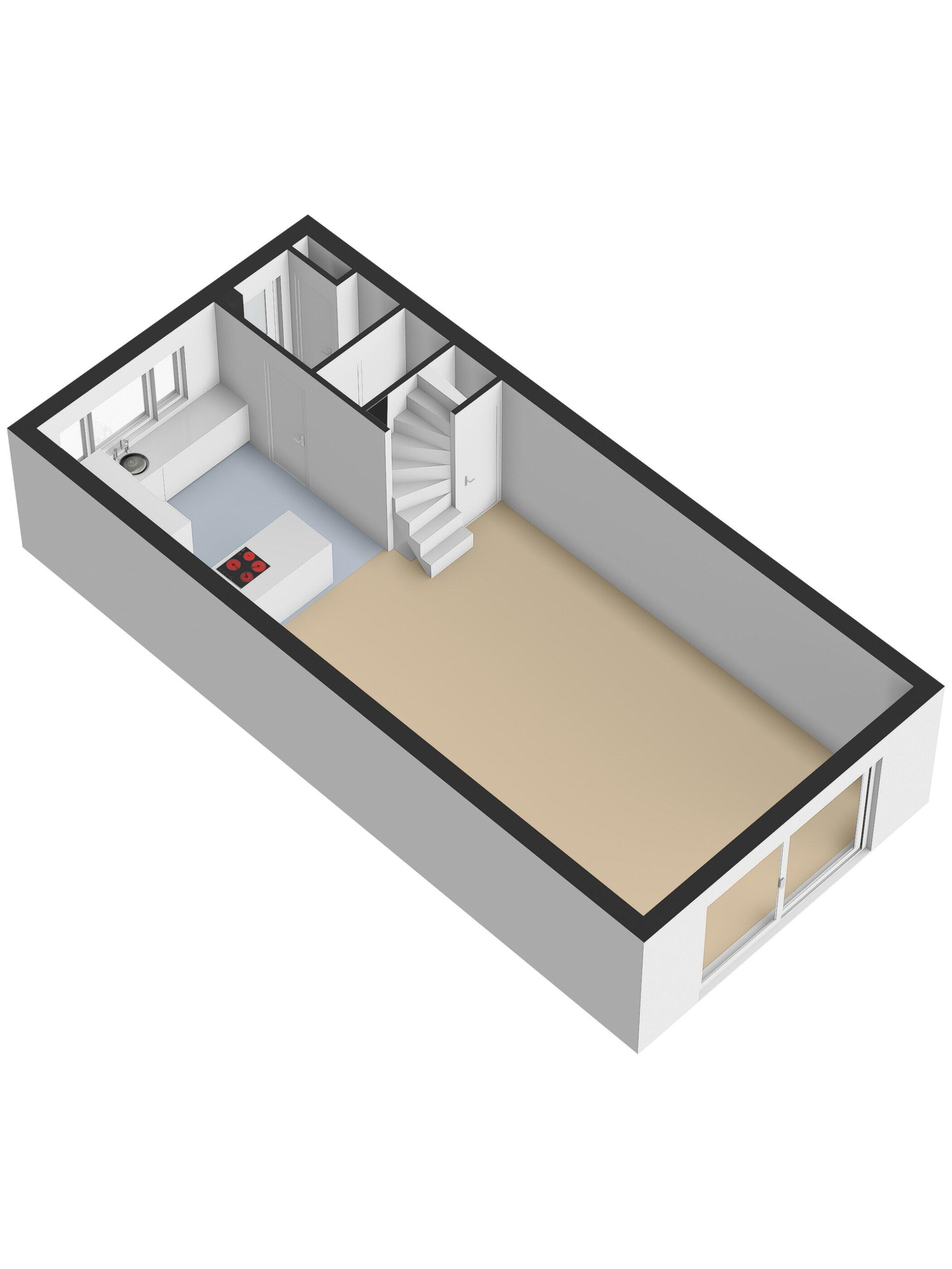 Begane grond: entree met compacte hal met een ruime toiletruimte. Tuingerichte woonkamer (42 m2) met een schuifpui die toegang geeft naar de veranda. De woonkamervloer is voorzien van grote vloertegels wat de ruimtelijkheid nog eens extra benadrukt. De keukenruimte is uitgevoerd met een fraaie, luxe keuken in de U-opstelling, uiteraard voorzien van goede apparatuur en een comfortabele Quooker. Trap naar de verdieping met daaronder een praktische kastruimte.