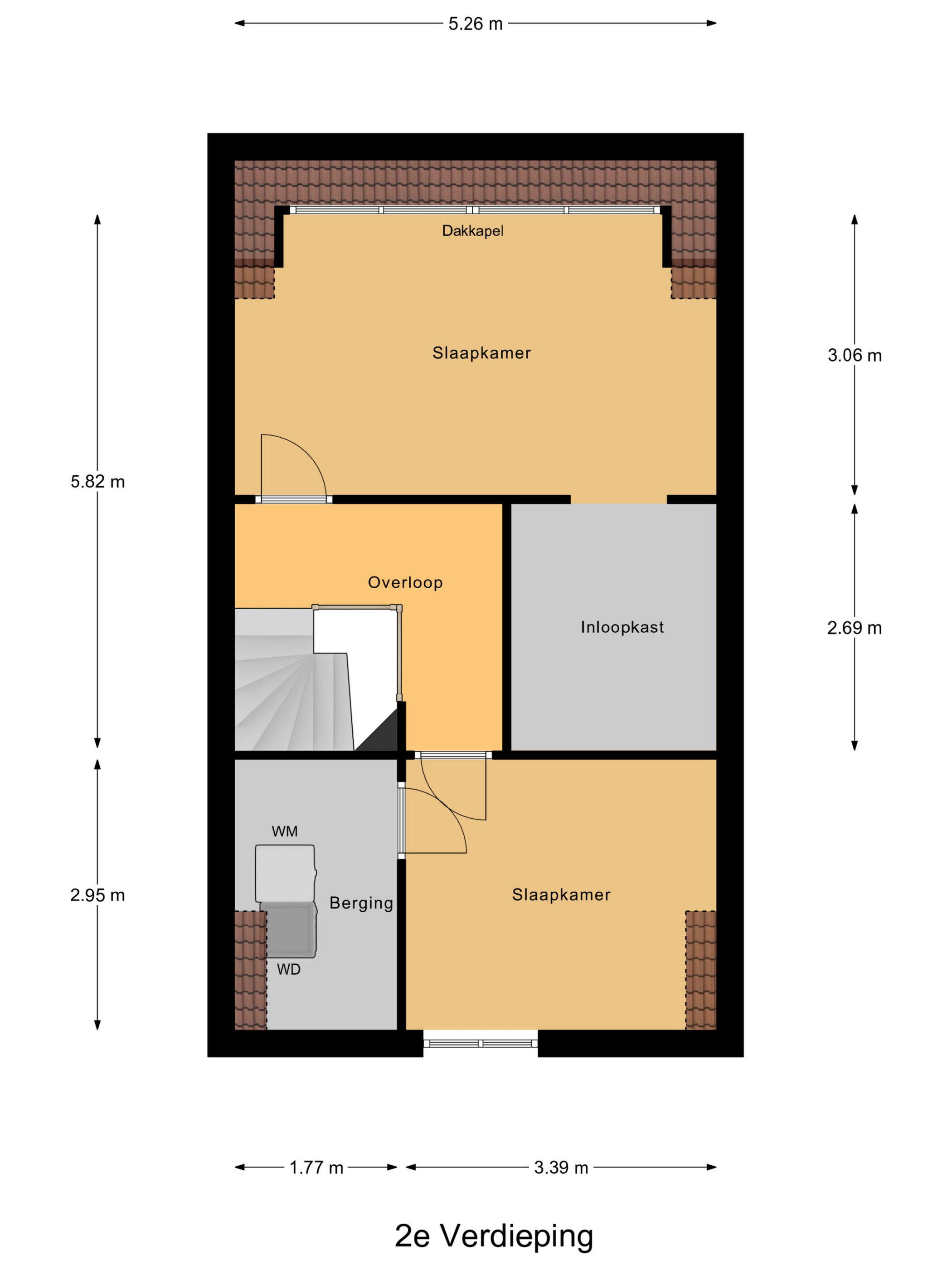 Tweede verdieping: opnieuw een ruime overloop. Een grote slaapkamer aan de achterzijde met een ruim 4 meter brede dakkapel en een een serieus grote inloopkast. Hierboven nog een behoorlijke bergruimte. Door de tuitgevel aan de voorzijde is ook de vijfde slaapkamer nog heel functioneel. De technische ruimte bevat ook de aansluiting voor de wasmachine en doet tevens dienst als binnen-berging.